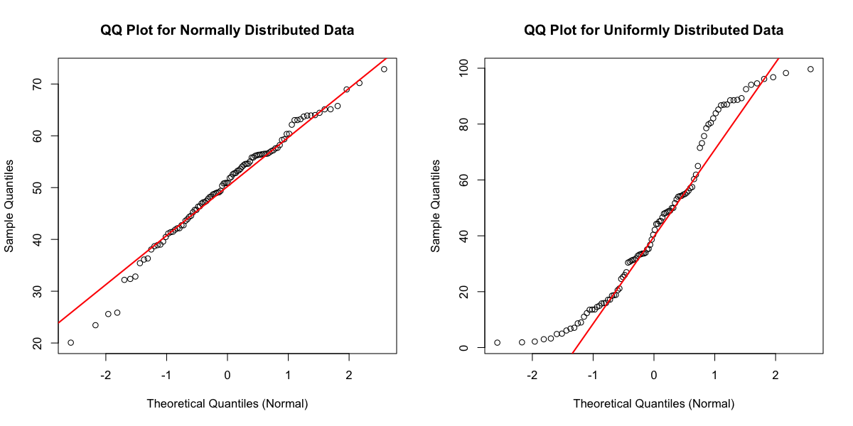 Q-Qプロットは、検定結果を補完し、データの非正規性がどのような形であるか(例:裾が重い、左右に歪んでいる)についての直感的な洞察を与えます。
